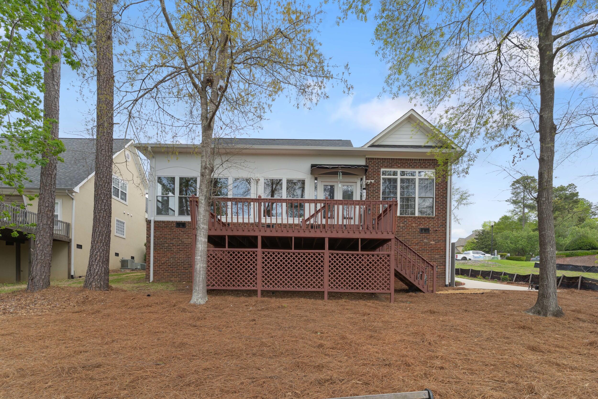 Gorgeous BRICK 4-bedroom home with the owner's suite on the main level, ideally positioned to overlook the scenic Jones Creek Golf Course. The house is freshly painted and beautifully refinished oak hardwood floors span the foyer, dining room, kitchen, breakfast area, and hallway, complementing the home's tasteful, high-quality updates throughout. The open-concept kitchen and breakfast room are filled with natural light and offer stunning golf course views. Just off the breakfast area, a glassed-in and screened fully air conditioned sunroom extends to a spacious deck--perfect for seamless indoor-outdoor living and entertaining. The inviting living room features a cozy fireplace and custom built-ins, creating a warm and functional gathering space. The owner's suite boasts newly installed oak hardwood floors, tray ceilings, and a well-appointed updated bathroom with tiled shower, dual vanities, a dedicated vanity area, and two walk-in closets. As you head upstairs, a striking feature window adds architectural interest and natural light. Bedrooms two and three share a convenient Jack-and-Jill bath, while the fourth bedroom or office provides flexible living options to suit your needs and ample storage areas. Additional highlights include the updated landscaping, extra parking pad, and concrete path to enclosed golf cart parking area in the walk-in under-home storage area with a concrete floor--ideal for golf cart parking--along with an unfinished area offering excellent potential for a workshop, wine storage, or additional flex space. The attached two-car garage provides easy access to the mudroom and laundry room for everyday convenience. The home is on the 11th tee box and the views expand to the 10 th hole as well as the clubhouse. Located in a cul-de-sac in the desirable Jones Creek community, residents enjoy access to top-tier amenities including a junior Olympic-size pool, tennis and pickleball courts, and social events throughout the year. Enjoy high-tech golfing at the Practice Club at Jones Creek driving range. The Jones Creek Golf Course adds even more value. Additionally, the HOA fees for Willow Lake include gated access as well as front and backyard maintenance. Enjoy unbeatable access to I-20, downtown Augusta, Augusta University, the medical district, and Fort Gordon. Outdoor lovers will appreciate the nearby walking path to the Savannah River, as well as three expansive parks and Evans Town Center with the Columbia County Performing Arts Center. The area is also known for its top-ranked Columbia County schools, locally owned restaurants, and convenient shopping. With its prime location, resort-style amenities, and potential high-demand Masters rental history, this Jones Creek gem is sparkling clean and ready to welcome you home!