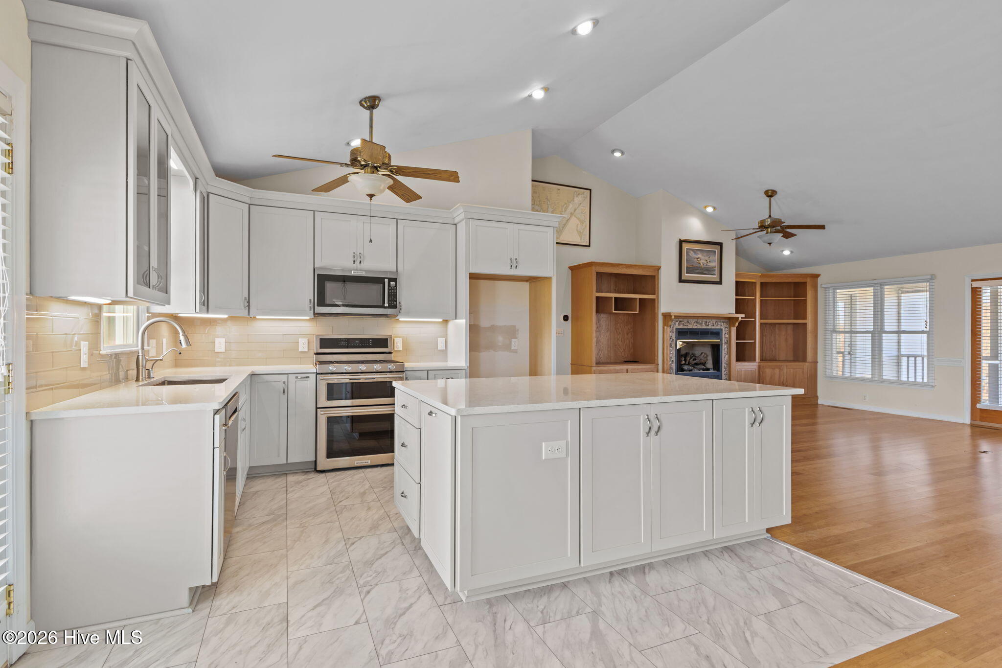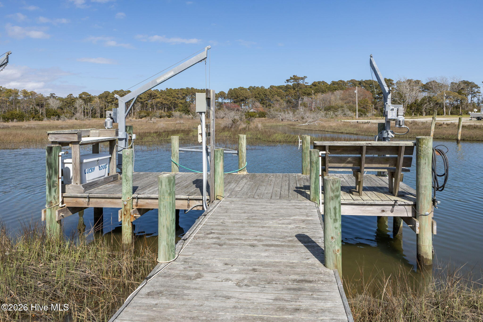 Waterfront home with a dock providing boat access to Cape Lookout and the Lighthouse, Core Sound, Shackleford, Beaufort Inlet, and the Atlantic Ocean. All of which are within 10 miles of this property. The home has 3 bedrooms and 3 full baths and as well as an additional ground floor room with a full bath that the owners used as a 4th bedroom. Both the kitchen and primary bath have been updated. The kitchen updates include quartz counter tops, a large island, cabinets, and stainless appliances. The primary bath has a step in shower with river rock floor, a great tub for soaking, and a separate double vanity area. There is a workshop with an overhead door making it easy to store kayaks, fishing gear, lawn mower...etc. Watch the sunrise from the back porch (partially screened) and the sunset from the front porch. The property also has an elevator, a whole house generator and a large fenced in backyard. 20 minutes to Historic Downtown Beaufort.