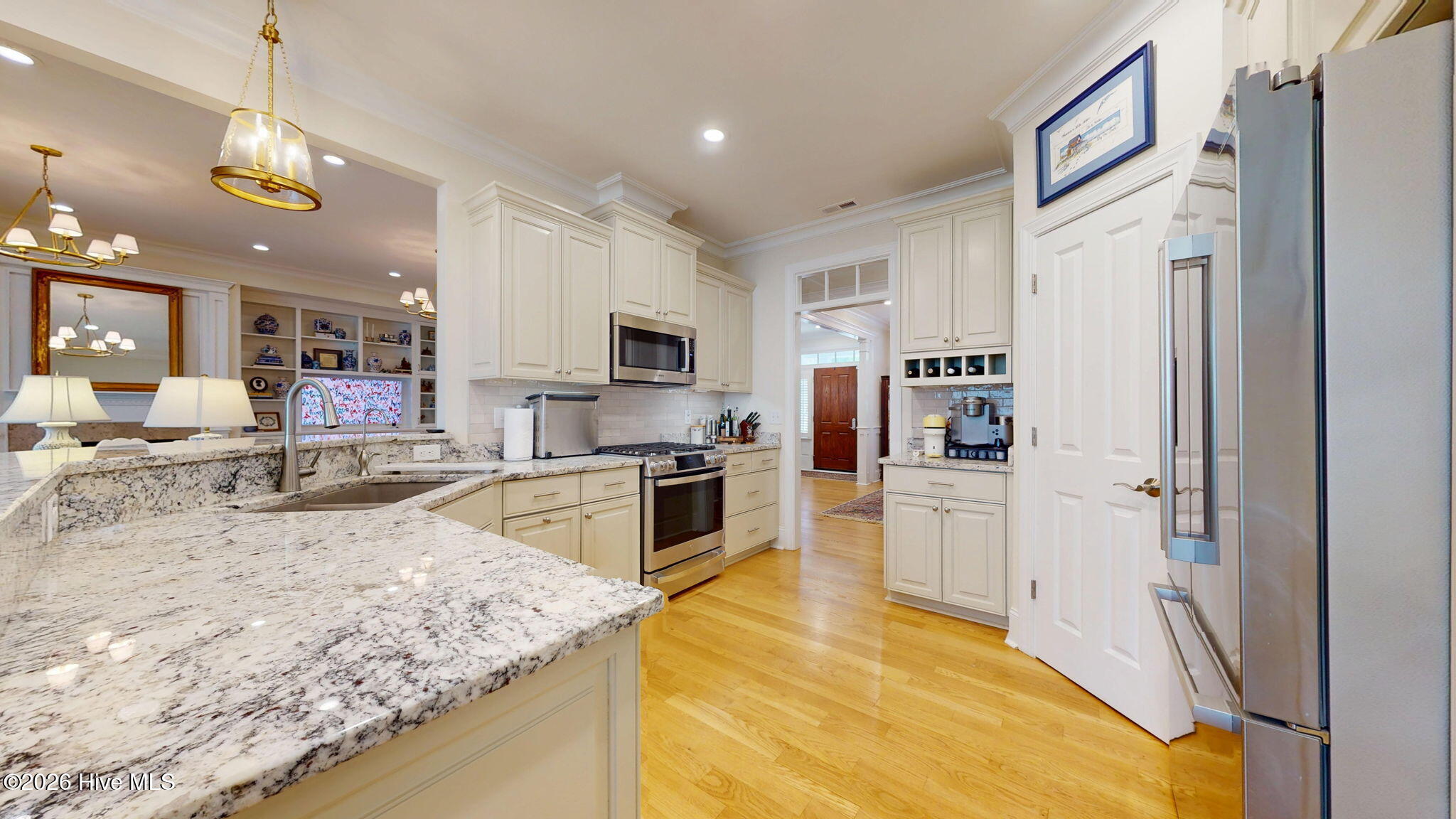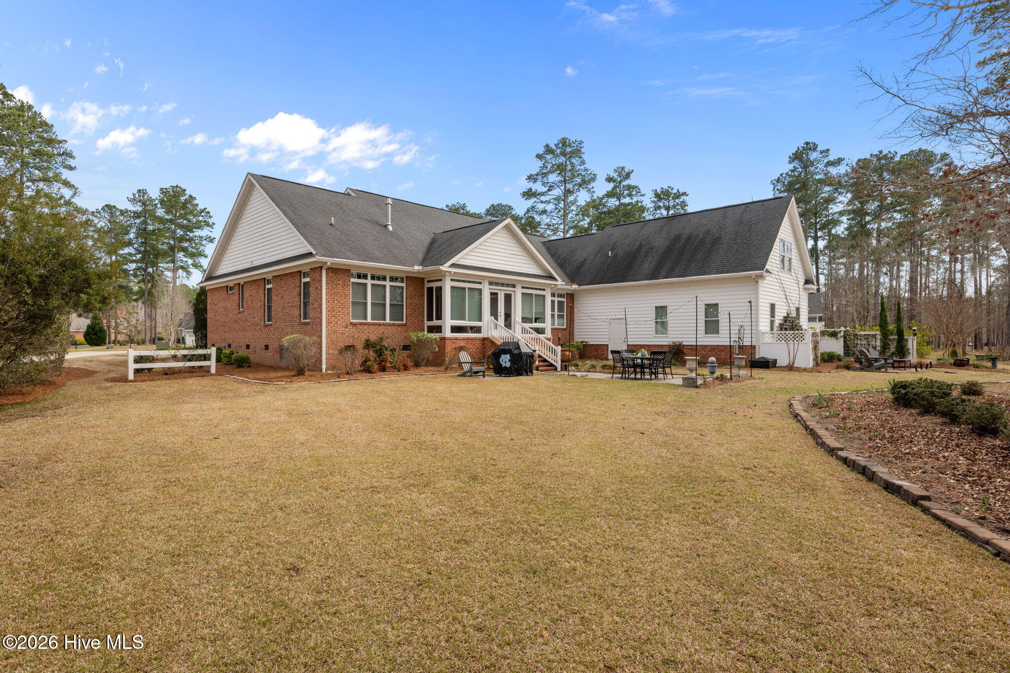 Tucked away at the end of a quiet cul-de-sac, this custom-built home offers beautiful views of the 11th fairway and a thoughtfully designed open floor plan. The split-bedroom layout provides privacy, with a spacious primary suite on the right wing and guest bedrooms on the left, connected by a full bath. Designed for both everyday living and entertaining, the home features a formal dining room and a dedicated study complete with French doors and elegant wainscoting. Wood flooring runs throughout the main living areas, adding warmth and character. This home also features a osmotic water house system and epoxied garage floor. The expansive kitchen is a standout, showcasing granite countertops, stainless steel appliances, a gas stove, and a cozy breakfast nook--perfect for enjoying morning coffee while taking in the golf course views. Recent upgrades enhance the home's appeal, including fresh interior paint throughout, newly stained hardwood floors, updated lighting in the kitchen and dining room and updated cabinet hardware in both the kitchen and living room. With scenic views from multiple rooms and true move-in ready condition, this home combines comfort, style, and an exceptional location. Residents enjoy exceptional amenities, including sidewalks and bike lanes, a fitness center, pool, tennis and pickleball courts, and a pavilion with an on-site restaurant. Optional golf membership also available. The community offers over 30 clubs and social groups, fostering an active and welcoming lifestyle. Cable TV and fiber internet are included through the HOA.