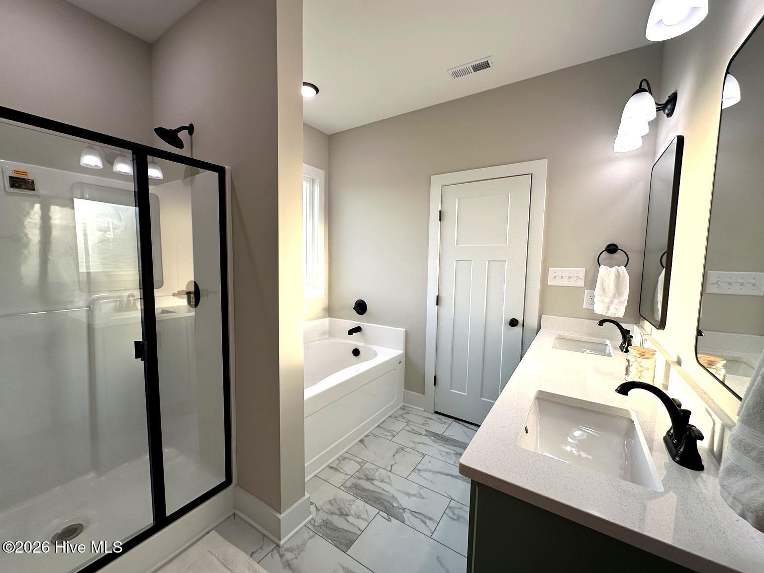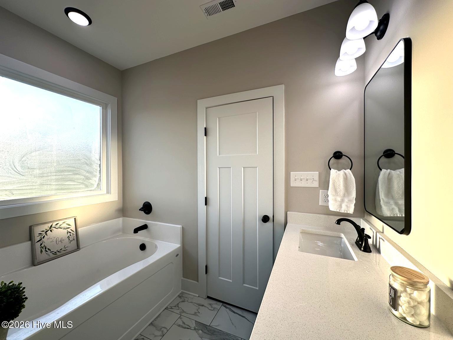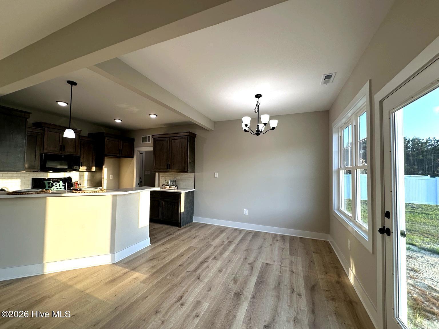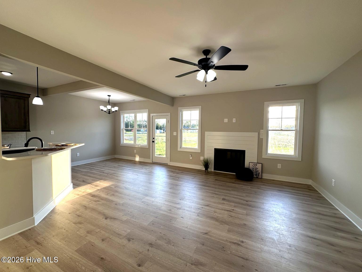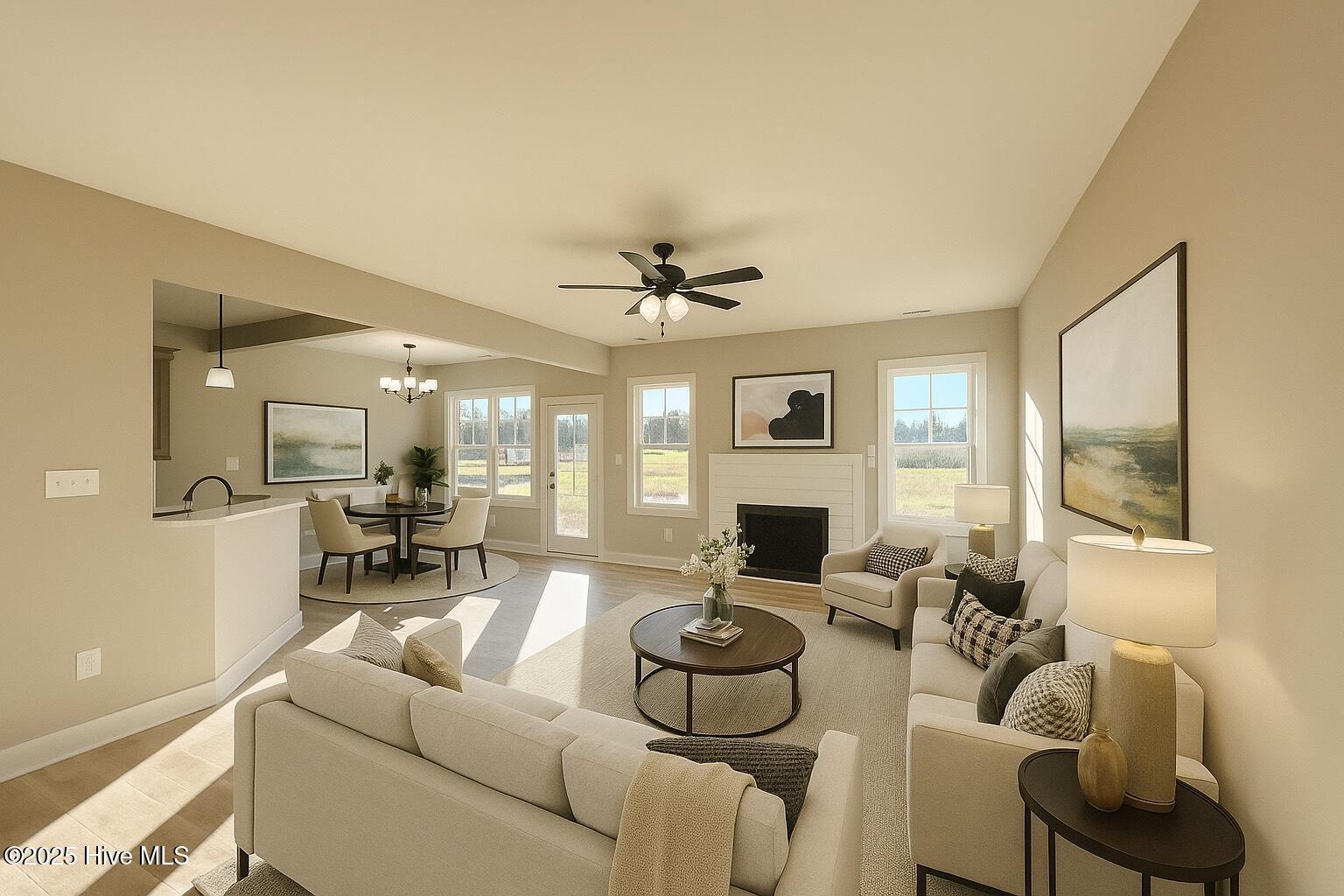 The Cofield Plan~4-Bedrooms or use one as FINISHED Bonus rm, 2-Bath Home on Nearly an Acre~ALL on MAIN level except 4th Bedroom or Bonus room & unf attic storage~This beautiful NEW CONSTRUCTION home offers space, style, and comfort, featuring QUARTZ countertops, an open-concept kitchen with an eat-at bar, and a vaulted family room centered around an electric fireplace, it's perfect for both everyday living and entertaining. The primary suite includes a separate shower and soaking tub, double vanity, and QUARTZ countertops~2 other roomy bedrooms on MAIN level~4th bedroom/Bonus/Office And additional 102+/-sf unfinished walk-in attic storage area are on second floor~Step outside from the dining area onto a concrete patio overlooking a spacious yard--ideal for relaxing or gatherings~The home also features a double-car garage and a walk-in laundry room for convenience.~WELCOME HOME