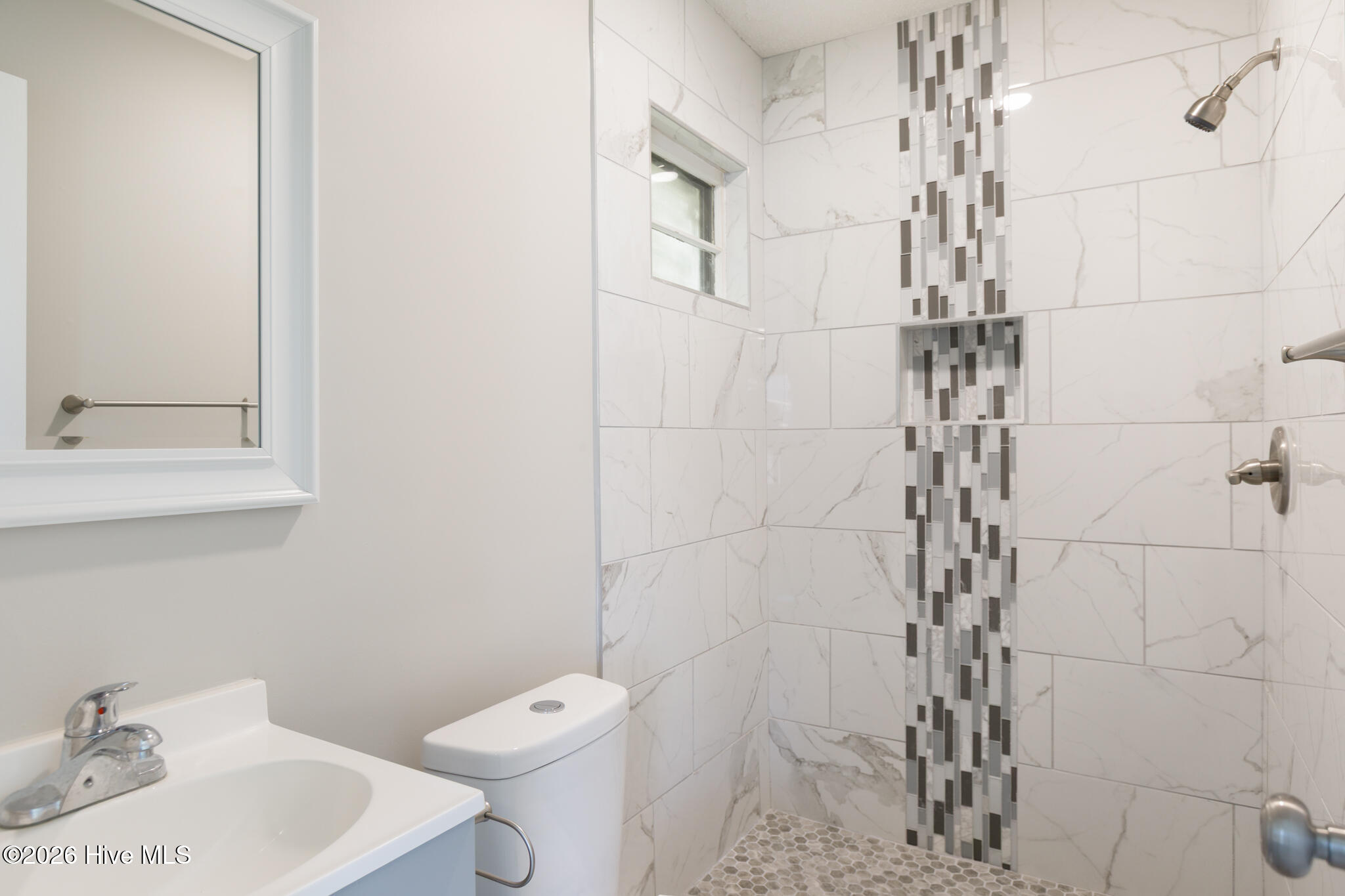 Awesome house waiting for you to call it home! Located on a corner lot in Elizabethtown convenient to get to HWY 87. Pretty brick veneer on the exterior with wood stained shutters and posts on the front porch. Remodeled in 2023 per previous sale: roof, water heater, flooring, plumbing, ductwork, cabinets/vanities, showers, and fixtures. HVAC 2017. Light remodel done in 2026 to touch everything up again with fresh paint, 5 new windows, landscaping, and minor repairs/touch ups. Sunken living room with wood burning stove in front of a brick accent wall. Attractive tile mosaic backsplash in the kitchen blends the cabinets, counters, and SS appliances together. Beautiful tile work in both bathrooms to included a fully tiled shower with a mosaic band in the owner's suite. Double carport, patio, and a storage shed in the backyard. Come check out the hottest new remodel in town!