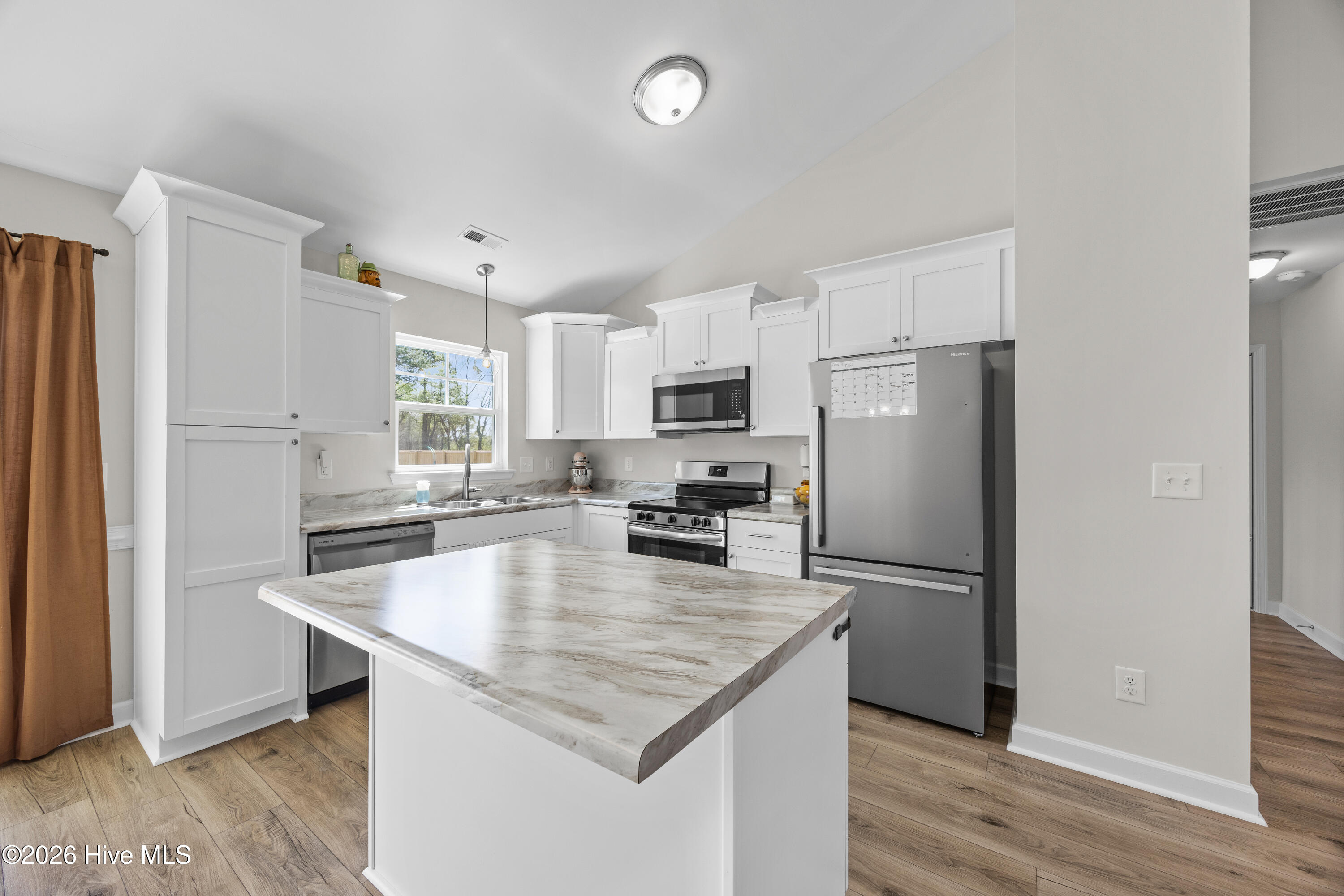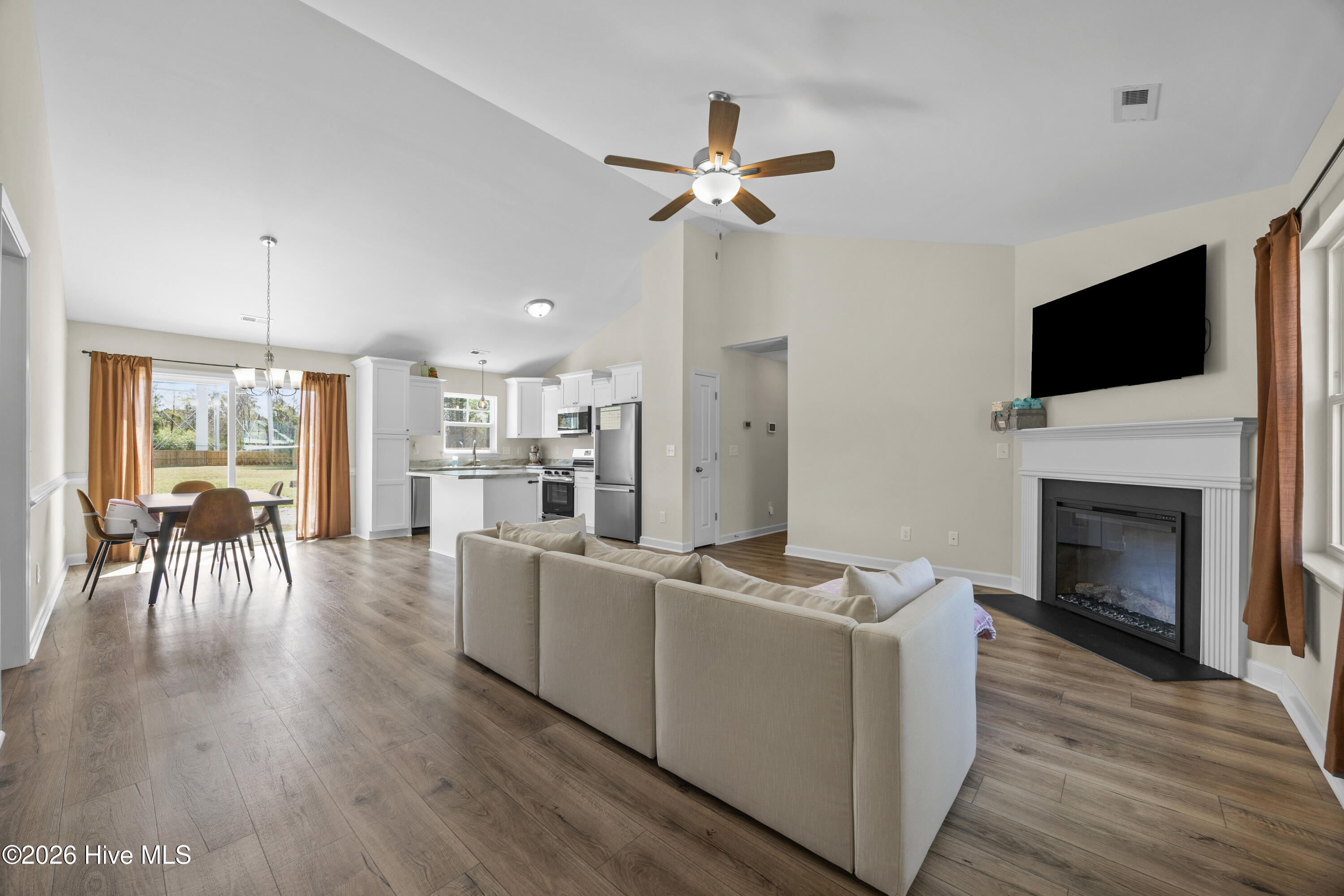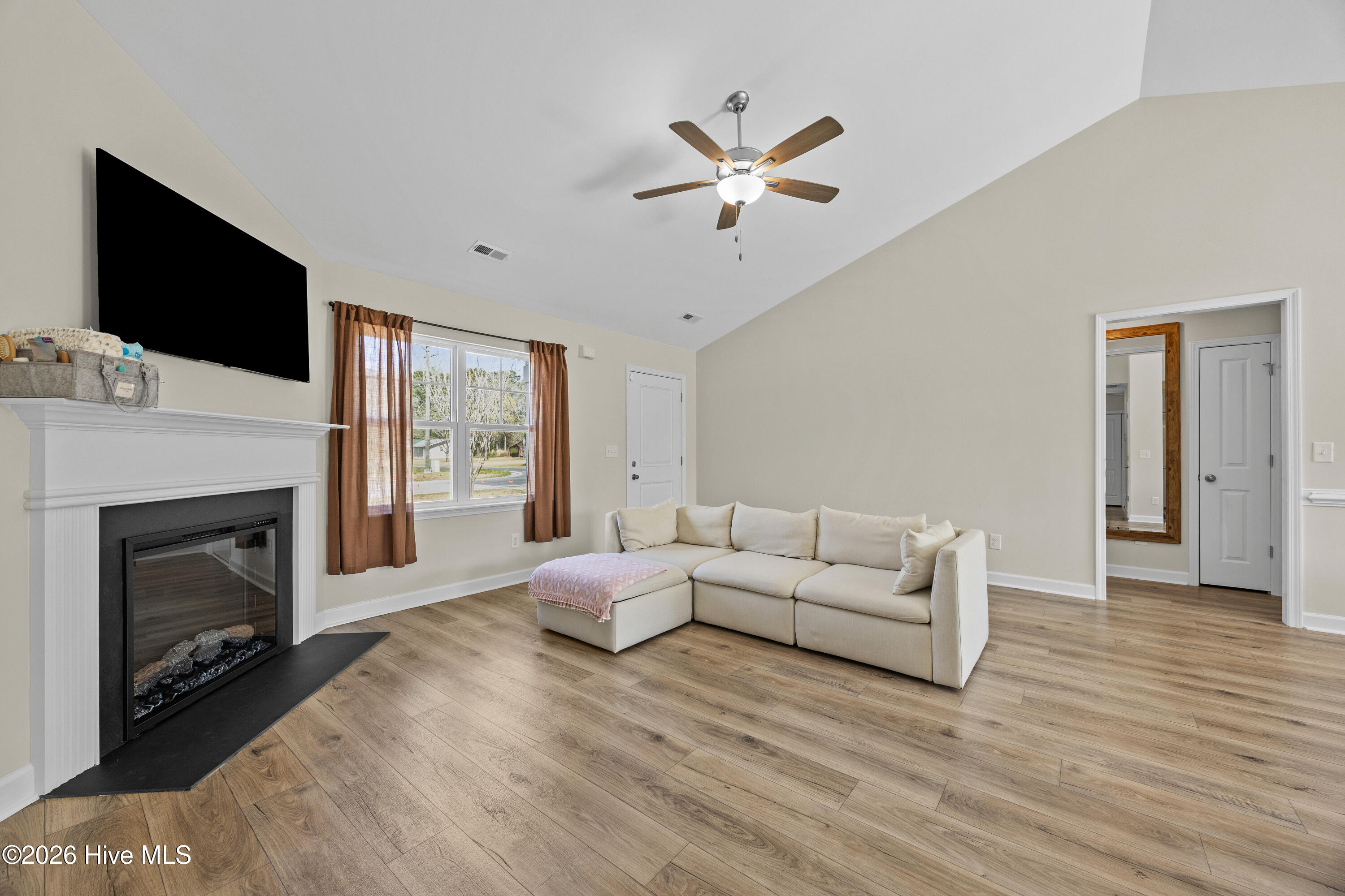 Beautiful Nearly-New Home on a Spacious Corner Lot in the Newer, Desirable Community of Orchard Creek. This stunning 8-month old Courtney floor plan offers 3 bedrooms and 2 full bathrooms, perfectly situated on a generous corner lot with 0.67 acres. Enjoy privacy and outdoor living in the fully fenced backyard--ideal for pets, entertaining or simply relaxing. With no city taxes, you'll appreciate the added savings while still being conveniently located. Just a short drive to Camp Lejeune and MCAS New River, shopping ad restaurants, making it a great option for those seeking both comfort and accessibility. Move in ready!