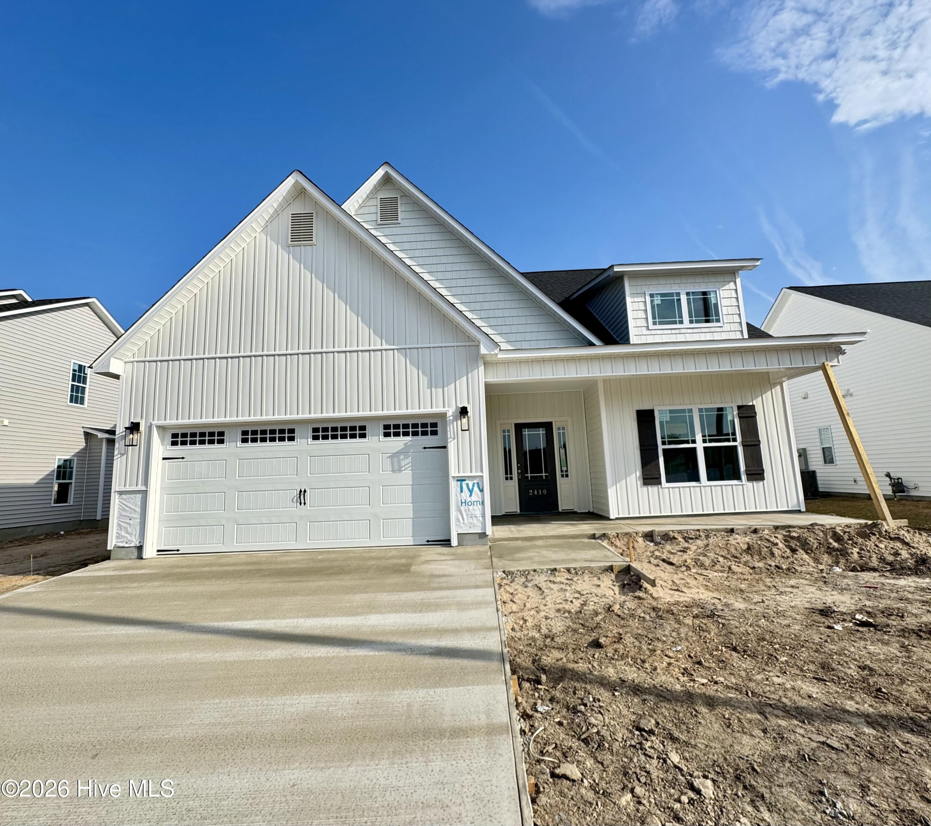 Welcome to this beautifully crafted one-story home by Rocky Russell Builders, Inc. Offering 3 bedrooms, 2 bathrooms, and a 2-car garage, this home features 1,552 square feet of thoughtfully designed open living space. Upon entry, a hallway leads to two guest bedrooms, a full bathroom, and a conveniently located laundry room. Continue into the heart of the home where the open-concept layout seamlessly connects the living room, kitchen, and dining area. The kitchen is a standout, featuring a large island with bar seating, granite countertops, tile backsplash, and upgraded stainless steel Frigidaire appliances--including a refrigerator. The living room showcases a gas fireplace with built-in shelving and a dedicated office nook, ideal for working from home or study space. The dining area is enhanced with elegant trim detail and offers direct access to the covered back patio--perfect for indoor-outdoor living. Privately situated at the rear of the home, the primary suite offers abundant natural light and a spacious ensuite bathroom complete with double vanity sinks, walk-in shower, and a large walk-in closet. Additional features include a tankless hot water heater, blinds throughout, electric vehicle charging outlet, and a 1-year builder warranty. Incentives: Builder offering $3,000 in closing costs with preferred attorney Allen Hahn. Sonya Hall with Atlantic Bay Mortgage offering an additional $2,500. Estimated Completion: End of May.