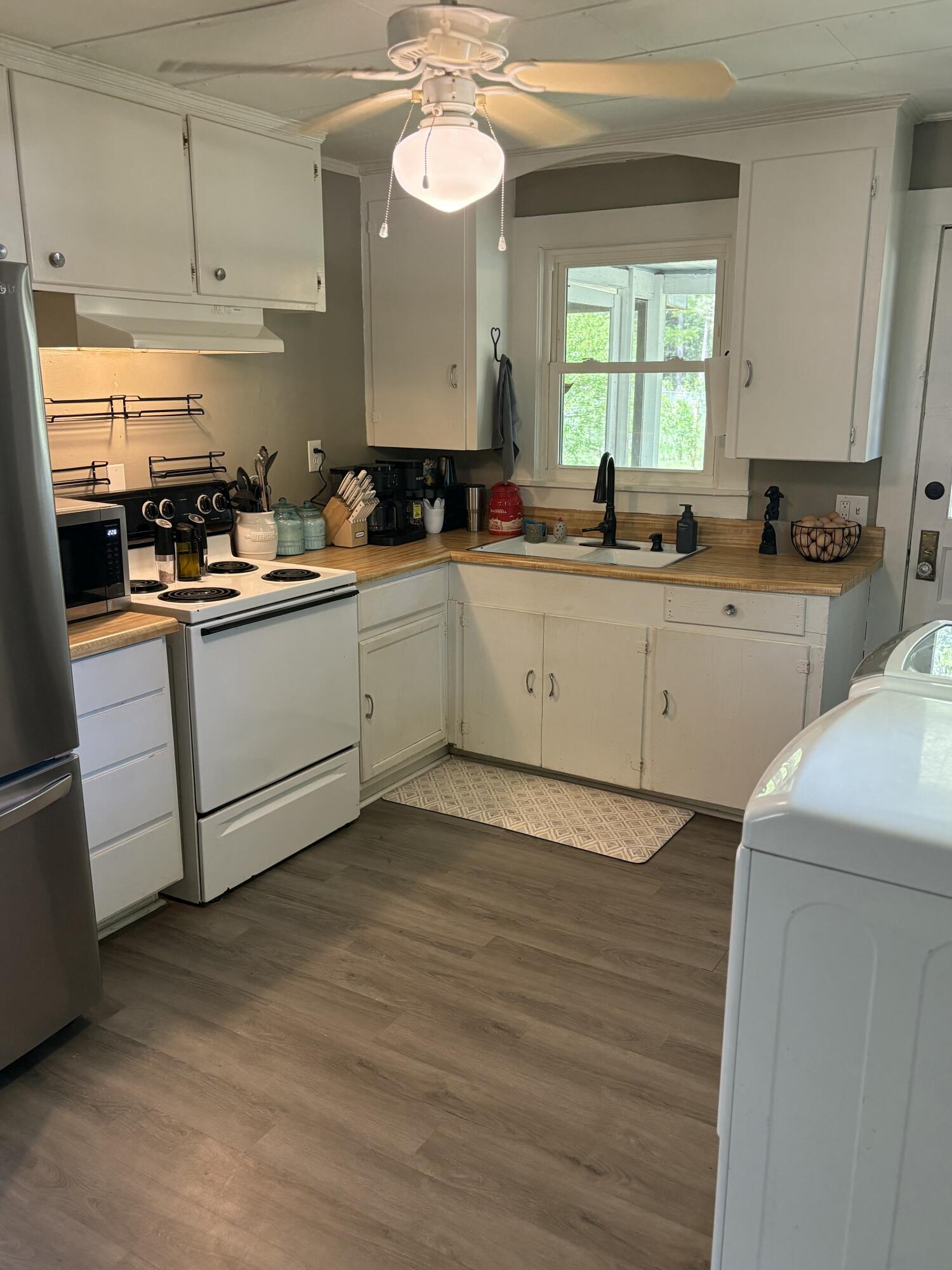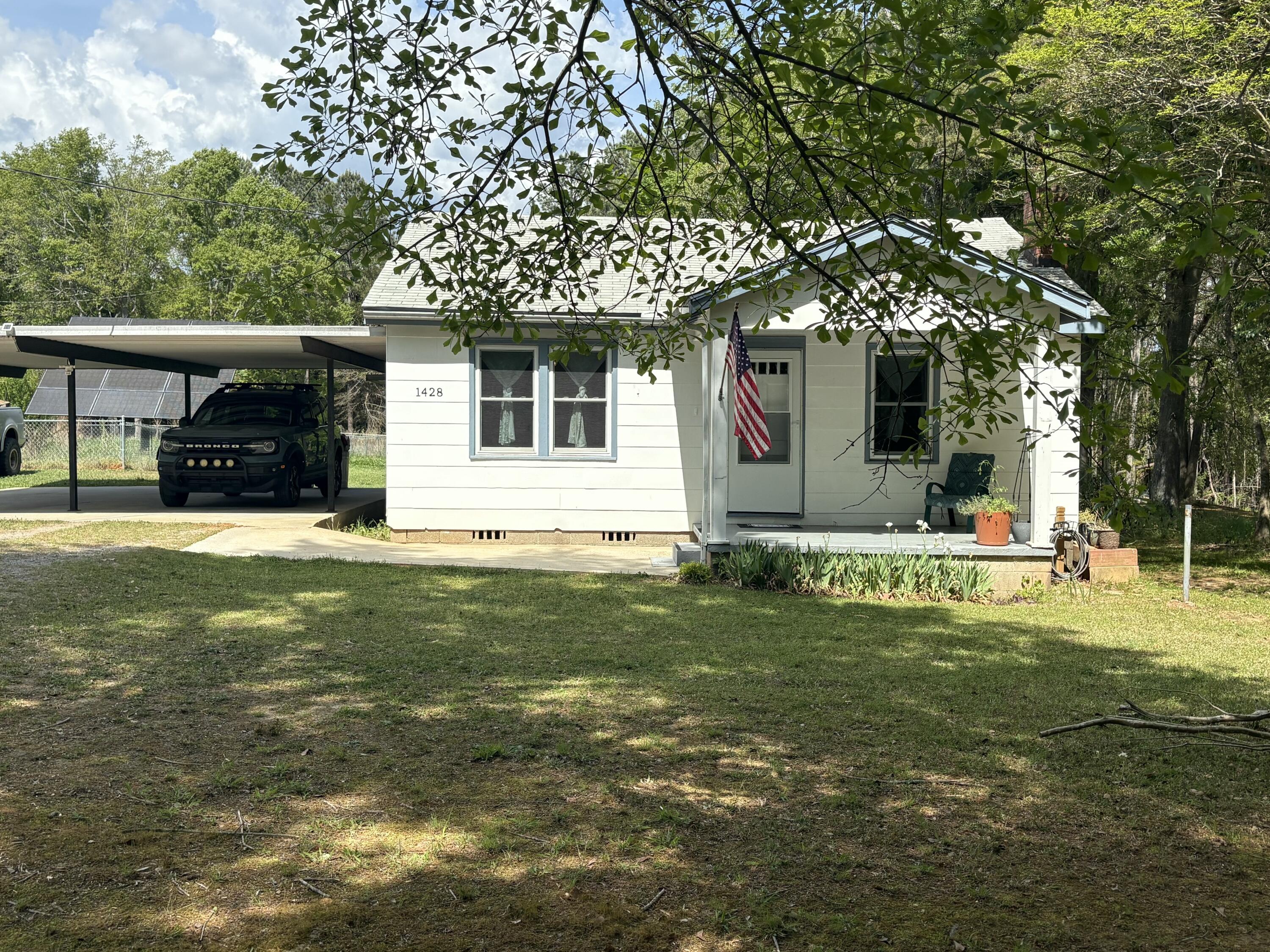 Quaint cottage offering country private living with an acre of land surrounded by crepe myrtles and fruit trees. Includes a spacious two-carport area. Step into the home with oak hard wood floors and a fireplace that flows in to the kitchen. Includes newer flooring, windows & bathroom! Generous backyard ideal for entertaining gatherings and cookouts. This home is a rare opportunity in todays market!