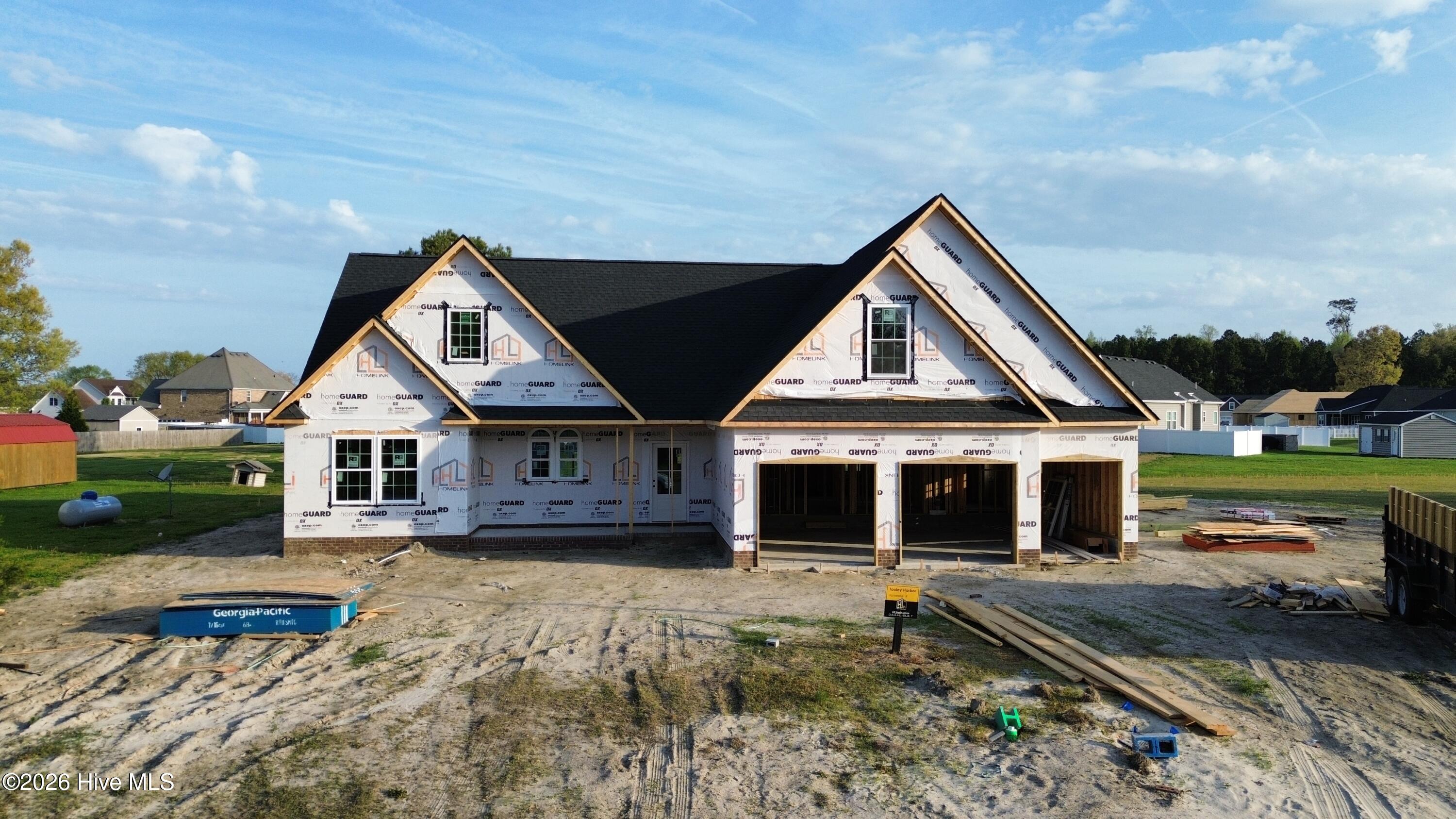 Discover modern farmhouse charm in Tooley Harbor with this thoughtfully designed new construction by HomeLink Properties. Known as the Comfort version, this home offers a slightly smaller footprint without sacrificing the style, features, and excitement of its larger counterpart. Inside, enjoy stone plastic composite flooring, cozy carpeted spaces, an inviting fireplace, 9-foot ceilings, and an open, airy layout built for comfortable living. The home features 3 spacious bedrooms, 2 full baths with dual vanities, plus an oversized FROG that can serve as a second living area, guest space, or bedroom. You'll also love the massive walk-in attic with flooring for storage, granite countertops, stainless steel appliances, and the extra half-bay garage perfect for a golf cart, small boat, mower, or motorcycle. Experience the HomeLink difference--Built Better, from the ground up. Call the listing agent for more information on completion date, status & current incentives offered by the builder.