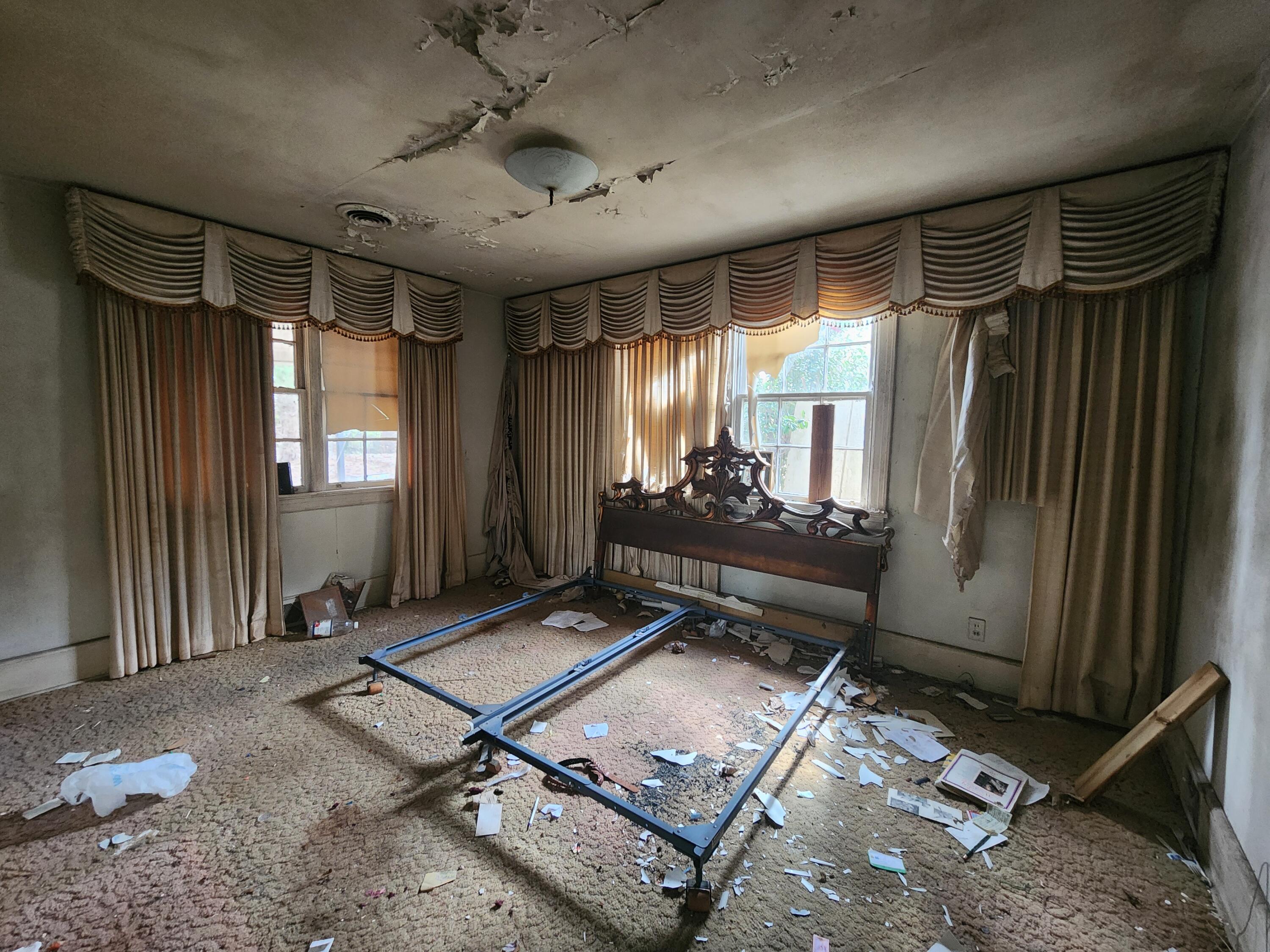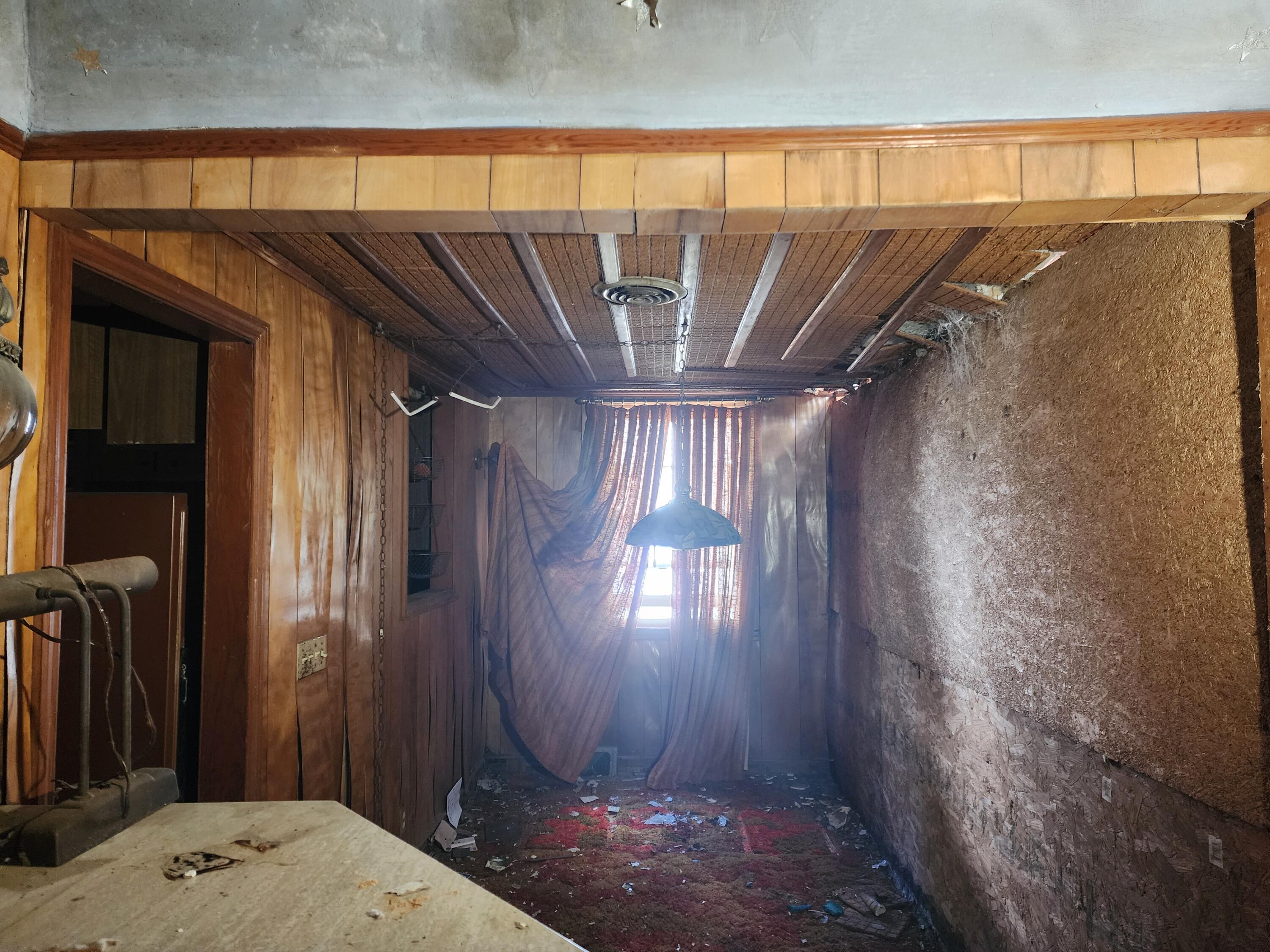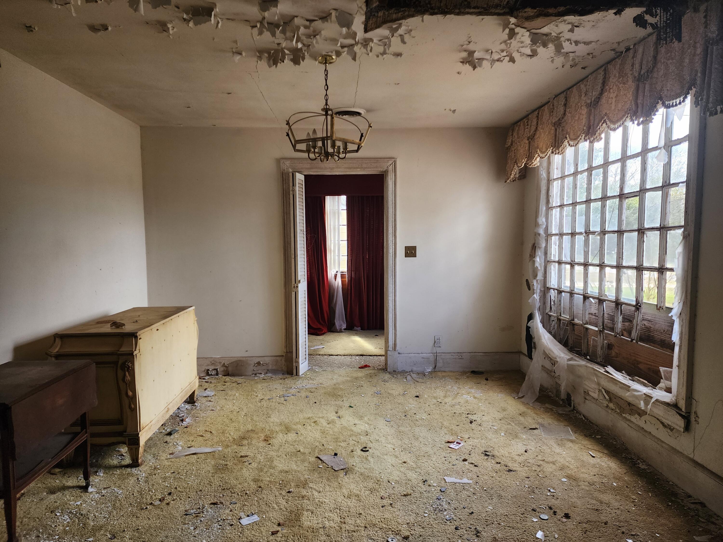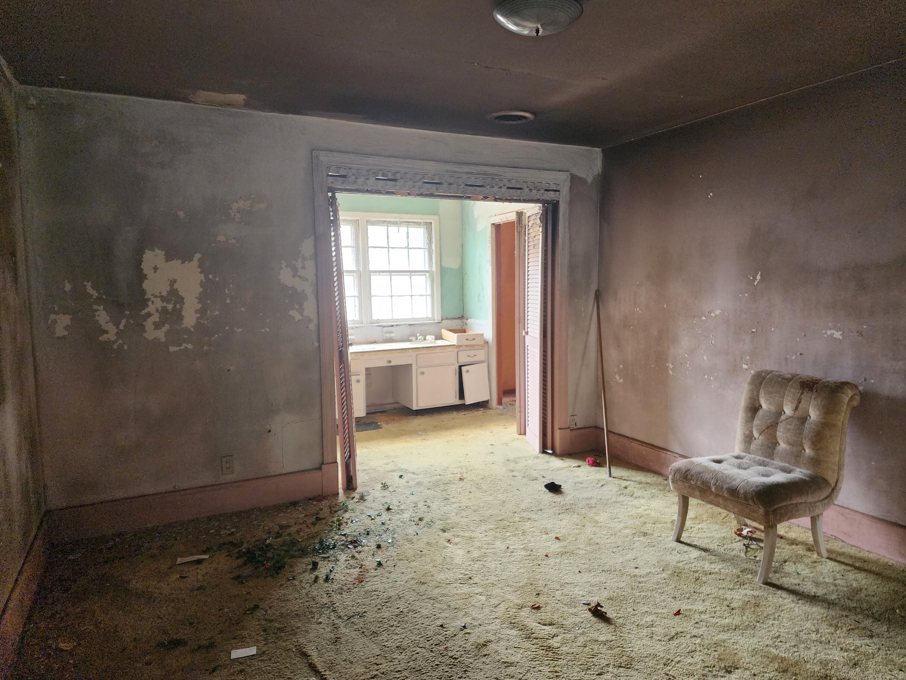 Fixer upper with a unique circular driveway, solid brick on 3 sides of the property, partially fenced rear yard with an underground bunker (condition unknown). Rear had an inground pool - not used in decades. Roof collapse in rear and fire damage in front at fireplace. Heating/cooling systems need to be replaced. Full house rehab, bring all offers along with your favorite contractor and a flashlight. Let's bring this Sleeping Beauty back to life!