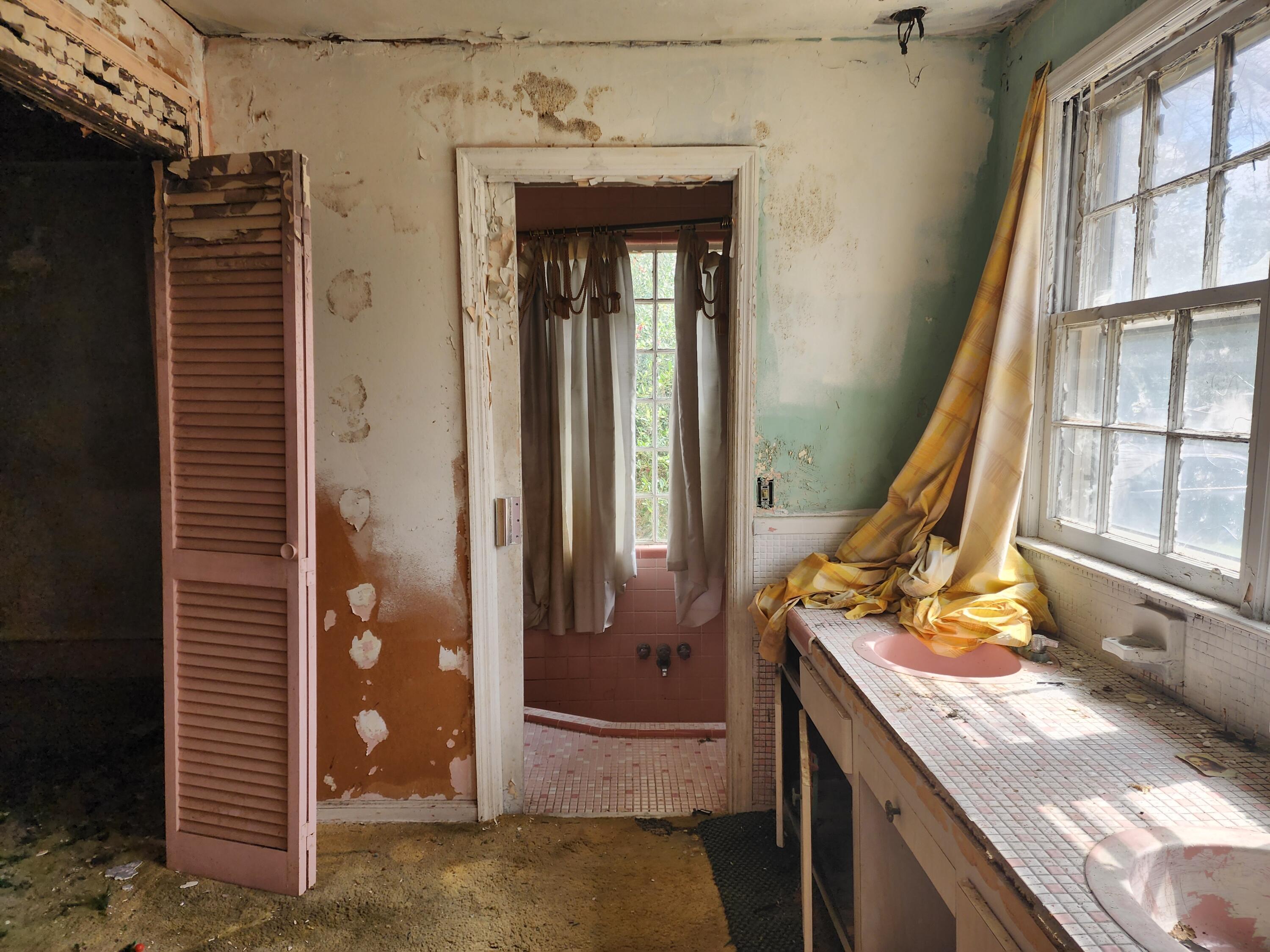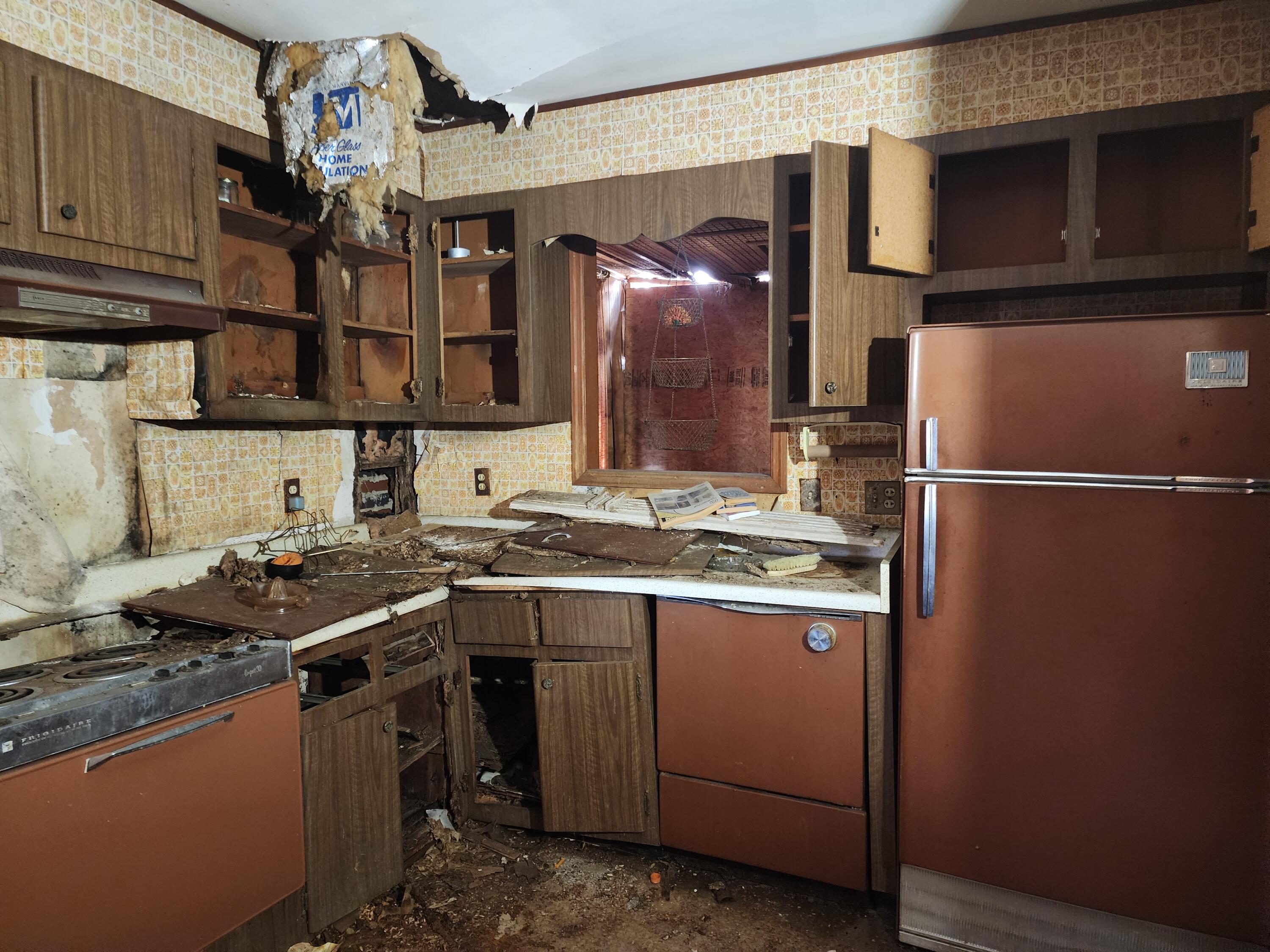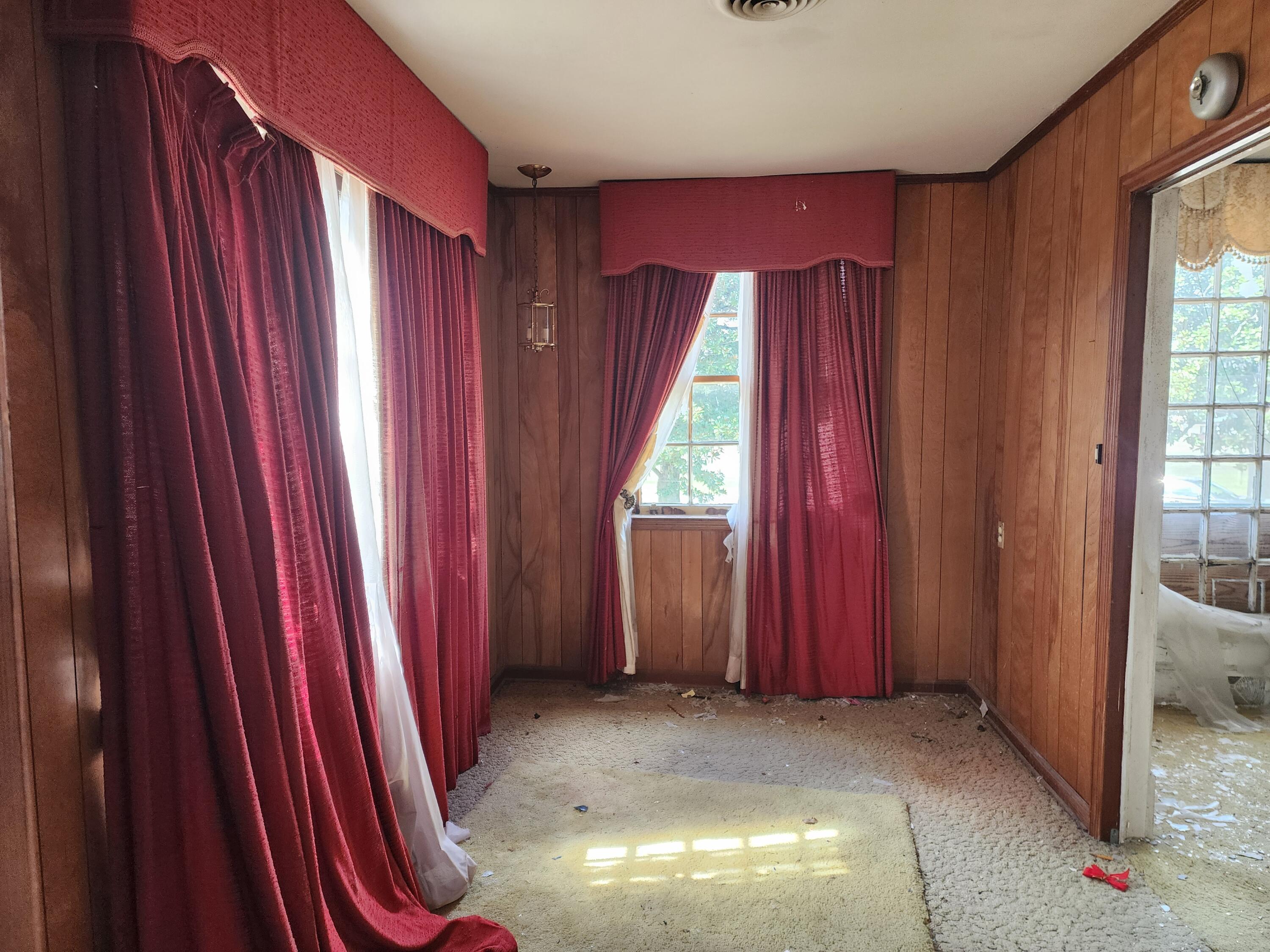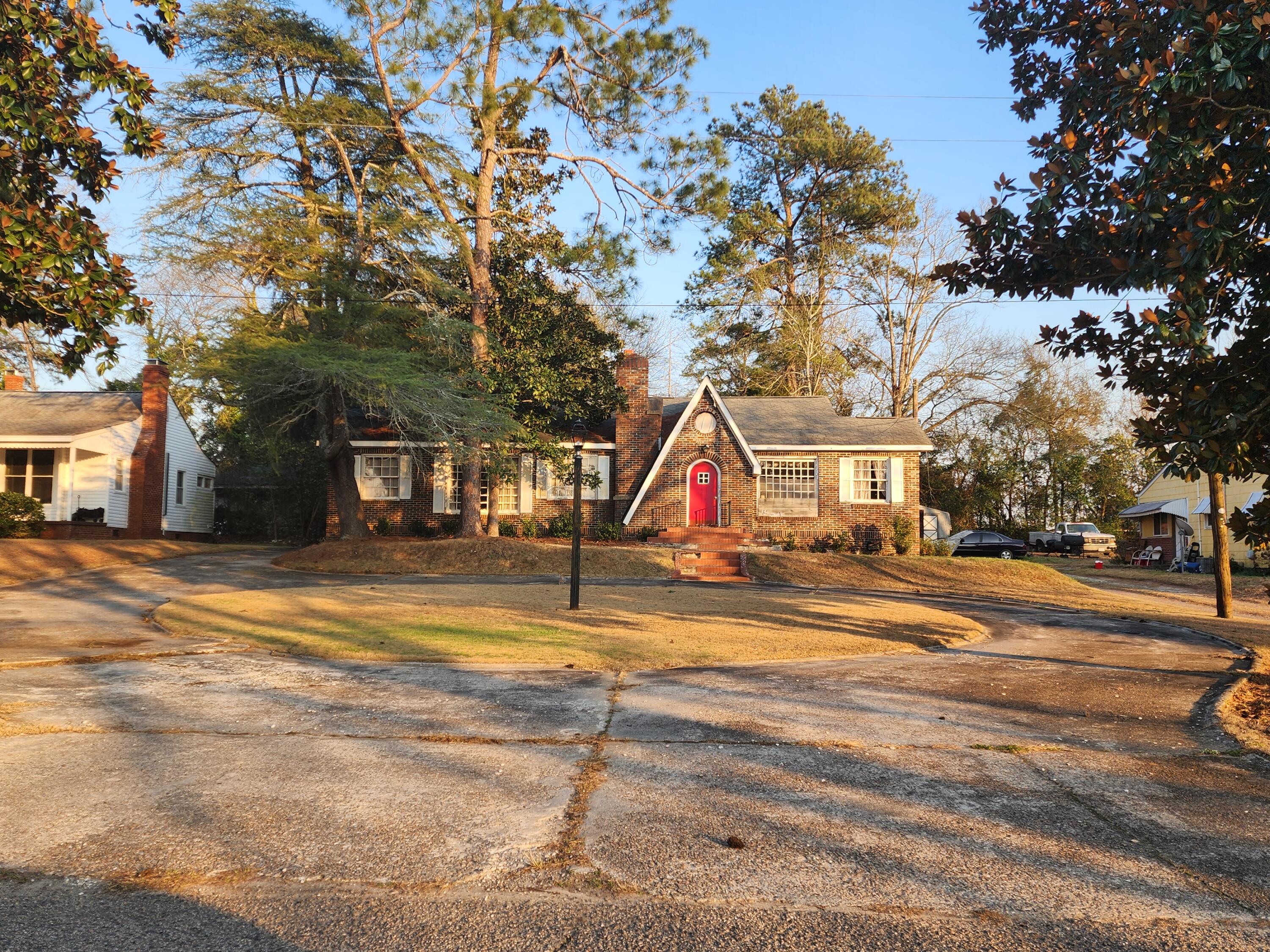 Fixer upper with a unique circular driveway, solid brick on 3 sides of the property, partially fenced rear yard with an underground bunker (condition unknown). Rear had an inground pool - not used in decades. Roof collapse in rear and fire damage in front at fireplace. Heating/cooling systems need to be replaced. Full house rehab, bring all offers along with your favorite contractor and a flashlight. Let's bring this Sleeping Beauty back to life!