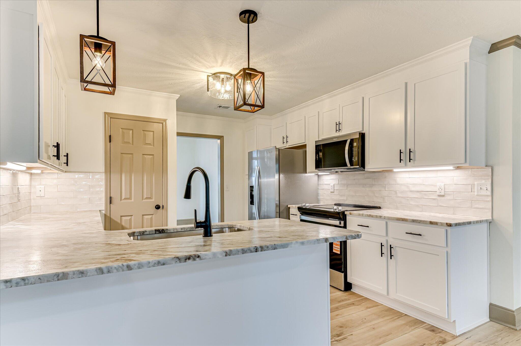Beautifully, updated and move-in ready. New floors, new kitchen cabinets, leathered granite counter tops, decorative backsplash, under cabinet lights, and new stainless steel appliances that open ups to the great room. Fresh paint throughout. This is a split bedroom floorplan. The primary bedroom has a feature wall, updated ensuite bathroom with new vanity, tiled shower and new lights and framed mirrors. The roof is two years old, the HVAC is a year old. This is a great Columbia County property for the value. Don't miss this one!