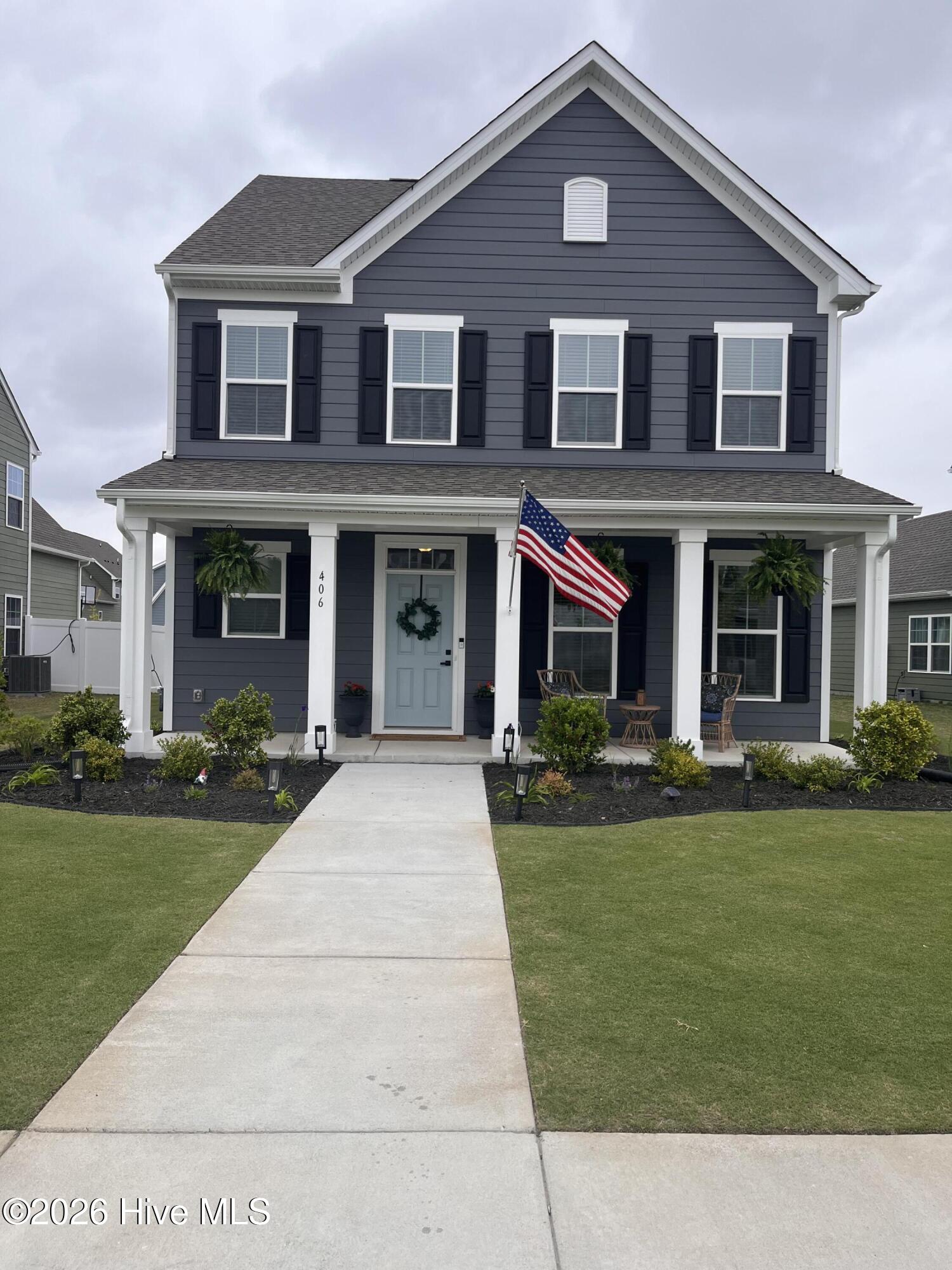 Space, comfort and convenience come together in this thoughtfully designed Moyock home just minutes from the Virginia line and an easy commute to the Hampton Roads area. Spacious, well-appointed and thoughtfully designed, this Salinger model by Ryan Homes in Moyock offers 4 bedrooms and 2.5 bathrooms and a versatile layout with multiple living spaces suited for both everyday living and entertaining. All four bedrooms are located on the upper level along with a conveniently positioned laundry room featuring a utility sink. The primary suite showcases double-door entry and a private en-suite bath with a walk-in shower and separate soaking tub. Both full bathrooms upstairs include double vanities enhancing comfort and functionality. The main level offers a seamless flow between the family room, dinette and kitchen creating an inviting space for gathering. Additional features include a welcoming foyer, mudroom, powder room and a dedicated office with double-door entry, desk and bookshelves ideal for remote work or a quiet retreat. The home is equipped with a Lennox electric air conditioning system and natural gas heat for year-round comfort. Notable upgrades include luxury vinyl plank (LVP) flooring, a tankless water heater, a KitchenAid refrigerator, a Maytag water softener system and a whole-home water filtration system. The attached two-car garage provides additional storage and includes a breaker panel wired for generator connection with the power cord conveniently located on the south side of the home. Enjoy relaxing mornings or evenings on the covered front porch with exterior electrical outlets available at both the front and rear of the home for added convenience. Ideally located near the Virginia line with convenient access to the Hampton Roads area and the Outer Banks, this home offers the space, features and flexibility that stand out in today's market. Schedule your private showing today and experience all this home has to offer.